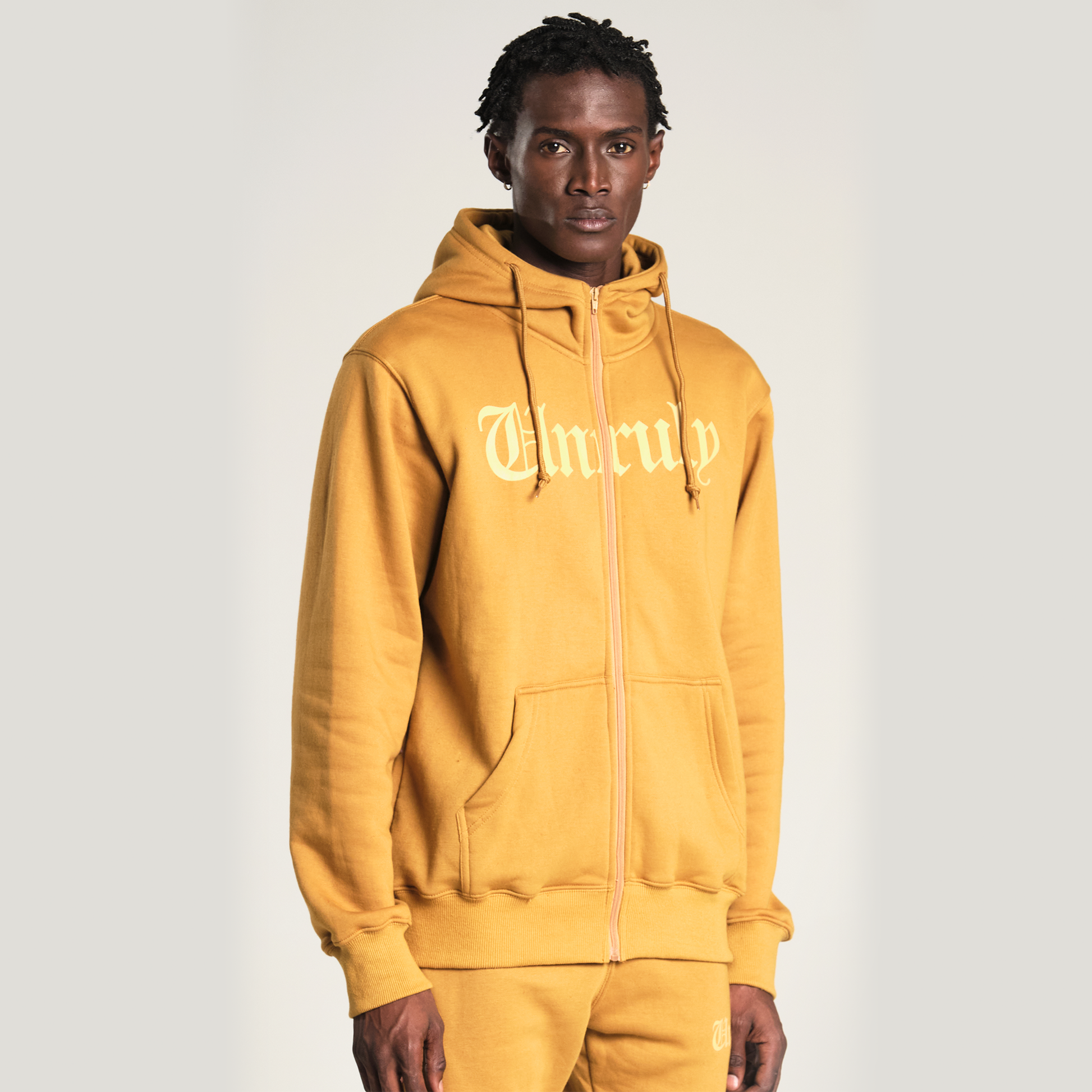 Unruly Zipper Hoodie Jogger Suit - Sand